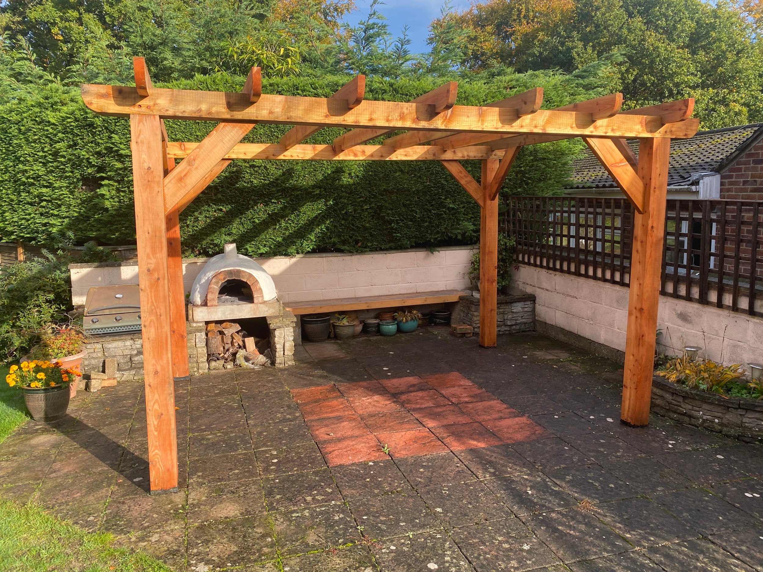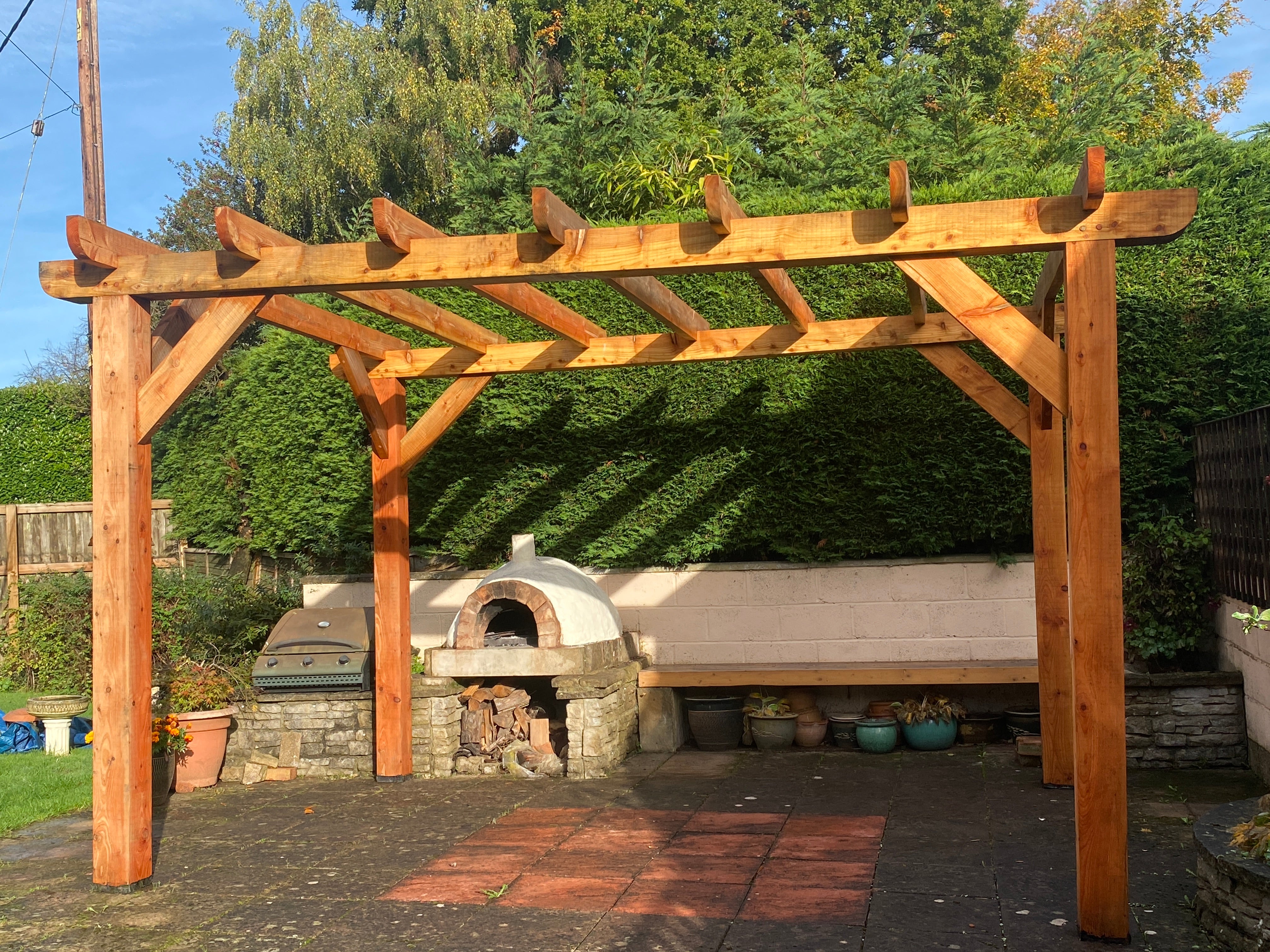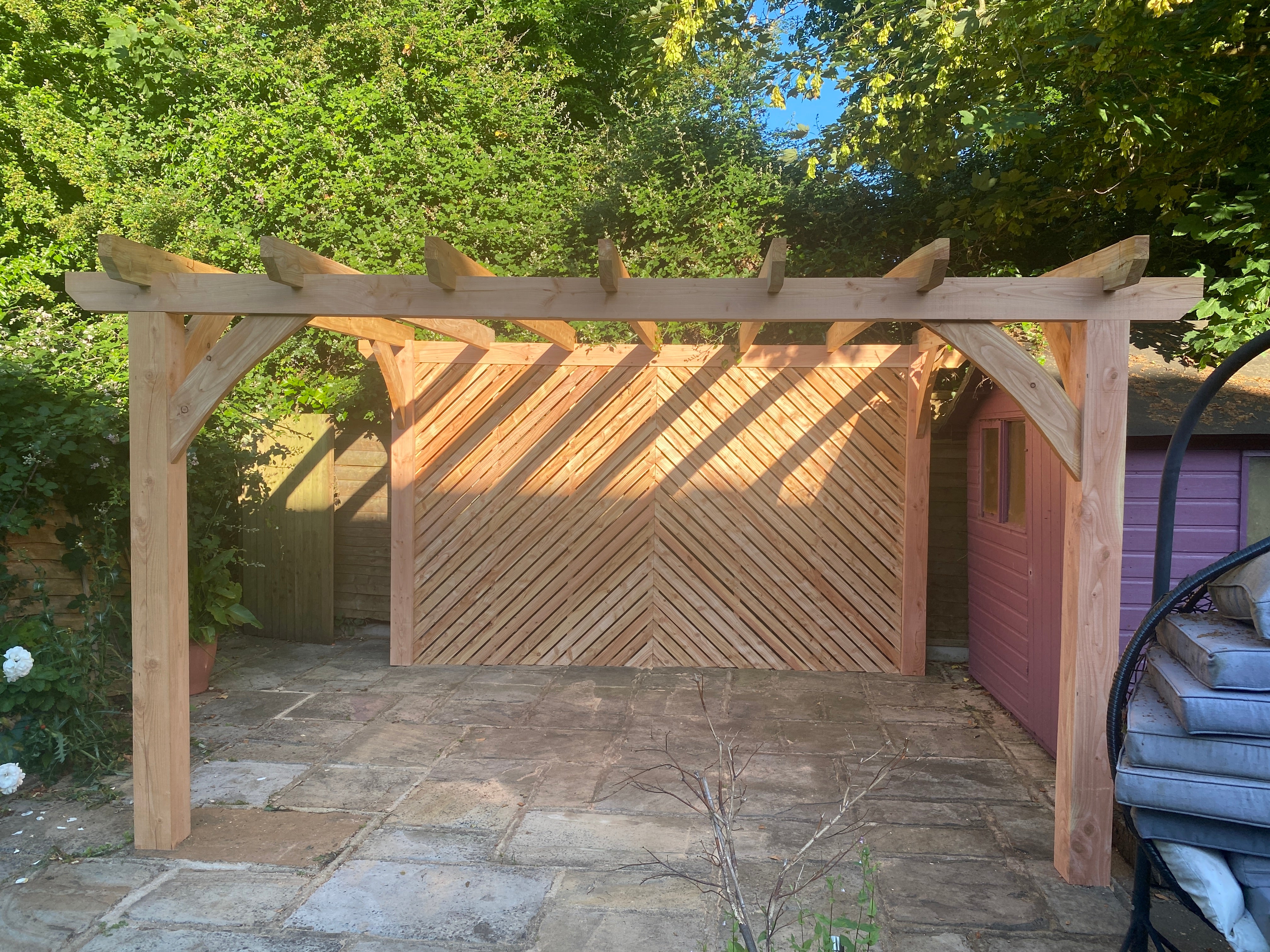 We offer our pergolas with our characteristic chunky timber posts and beams which are balanced with slighter rails and often softened with curves on the beam end profiles. There is lots of flexibility in the design of pergolas in terms of size, shape and other specifications meaning we can accommodate almost anything, within reason!