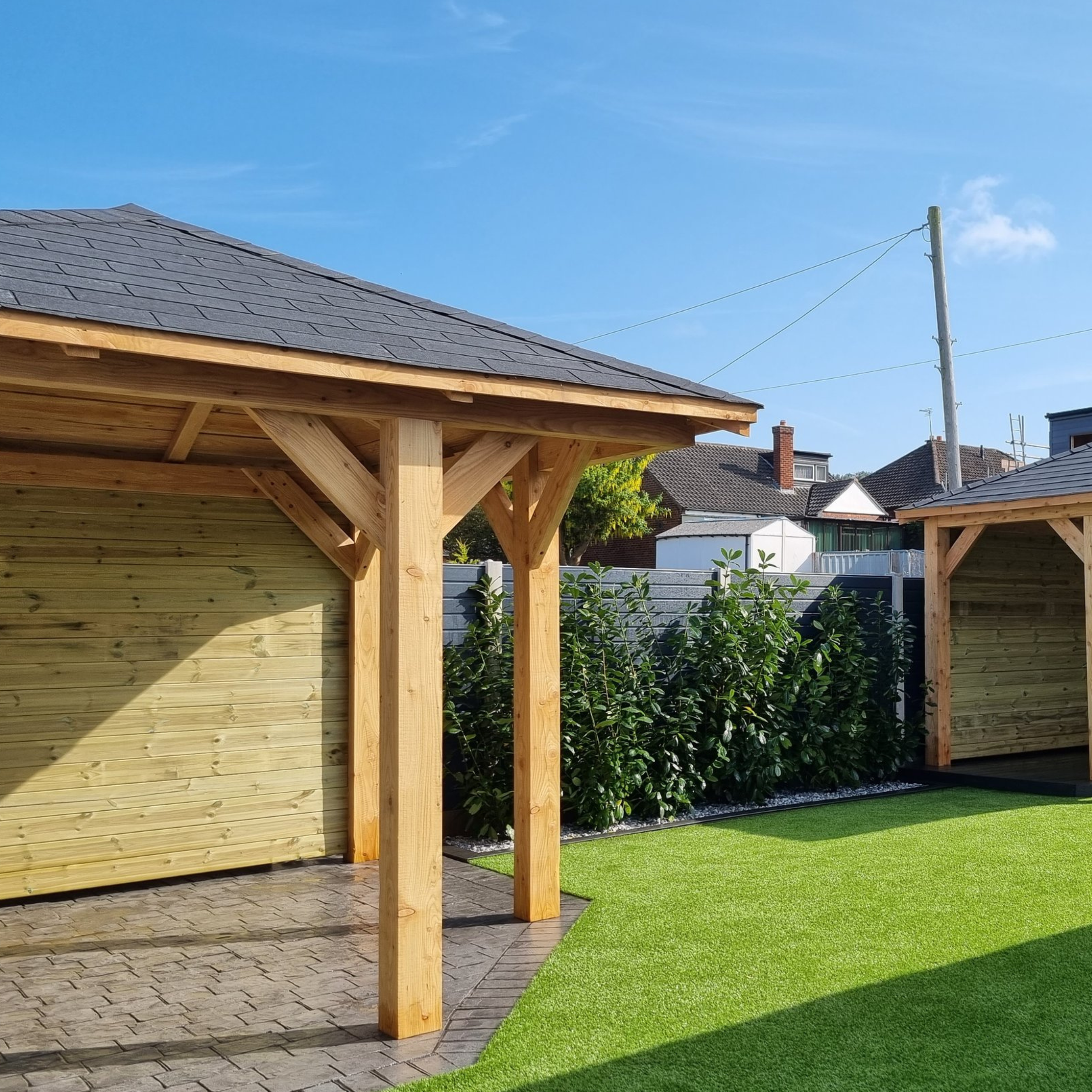 The Stockwin Gazebo is a thoughtfully designed corner-entry structure, perfect for enhancing accessibility and usability in your outdoor space. Specifically crafted for situations where the main approach is from the corner, The Stockwin features a unique design that frames a beautiful and inviting opening, eliminating the need for obstructive posts at the entrance. Constructed from high-quality larch timber, known for its warm orange hue and natural durability, The Stockwin offers a cozy and natural atmosphere. The chunky dimensions and sturdy roof boarding provide a robust and well-proportioned structure, offering comfortable shade in the summer and shelter in the winter. Ideal for outdoor dining, bar areas, or covering hot tubs, The Stockwin is versatile enough to also serve as a stylish carport in larger sizes.