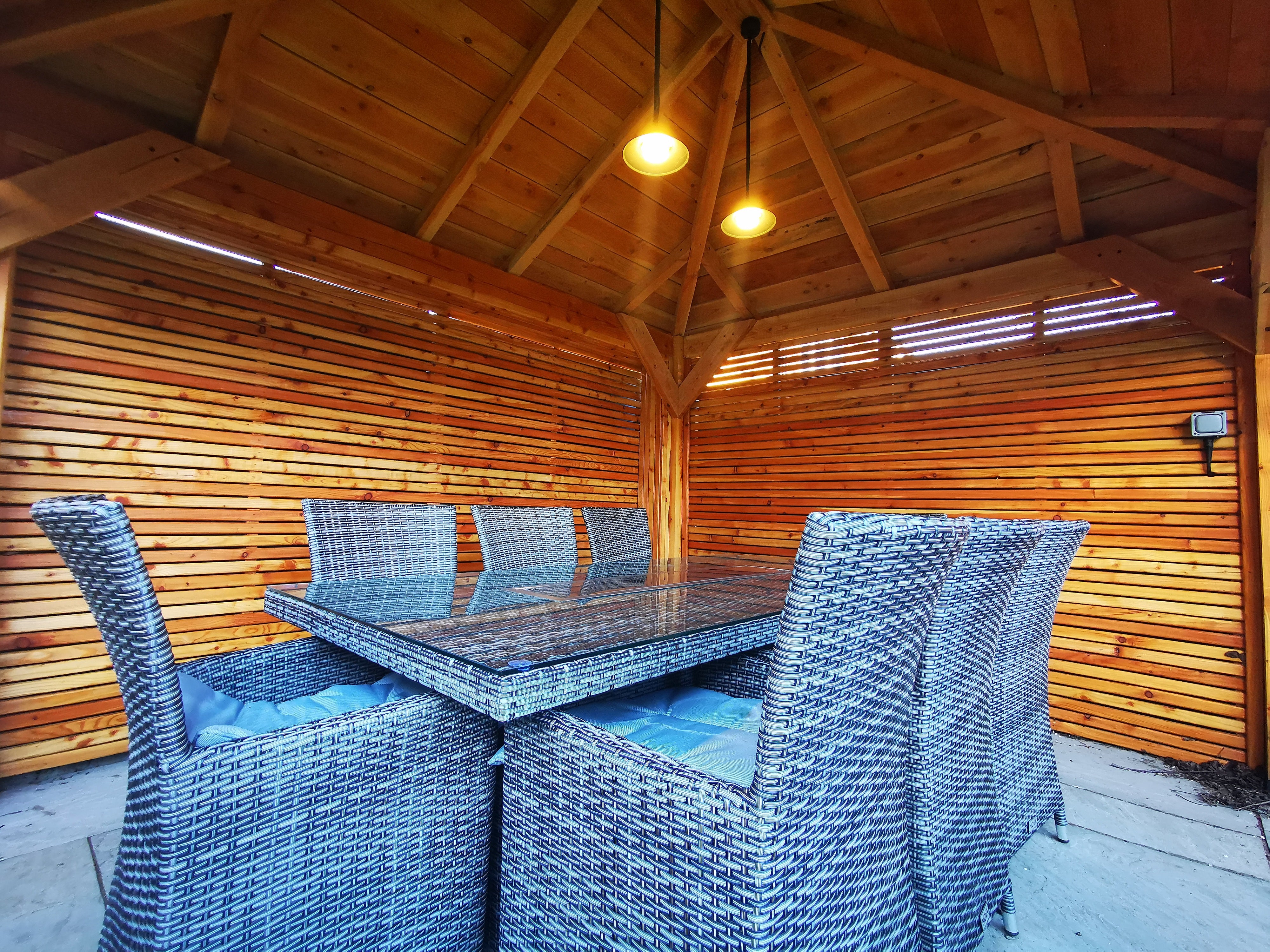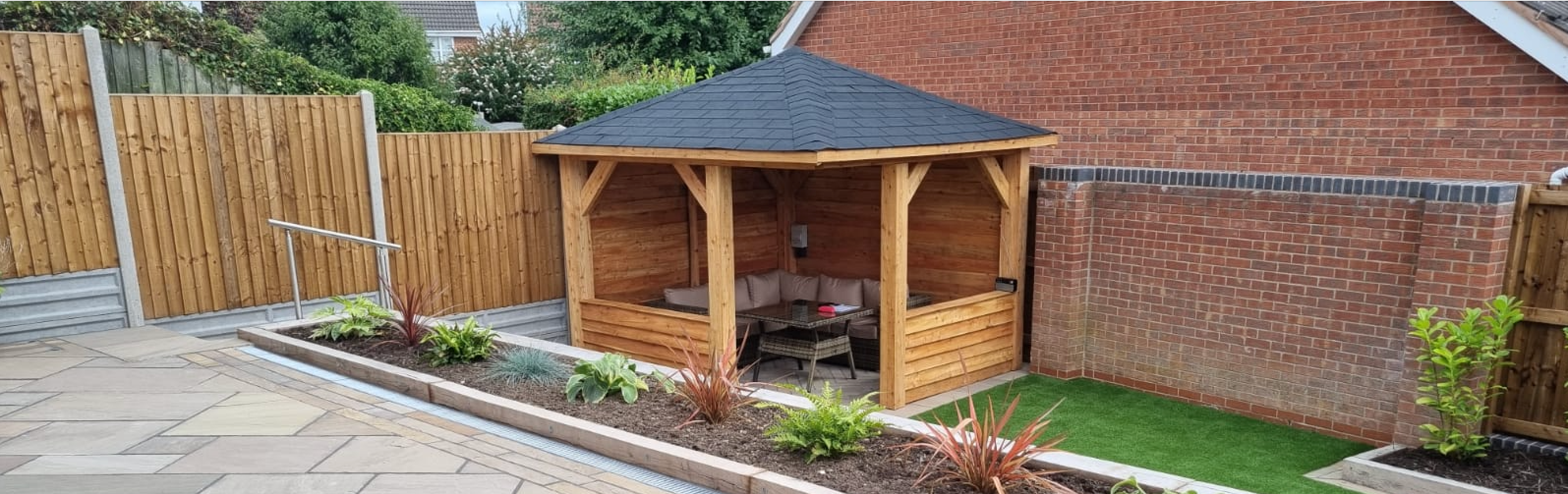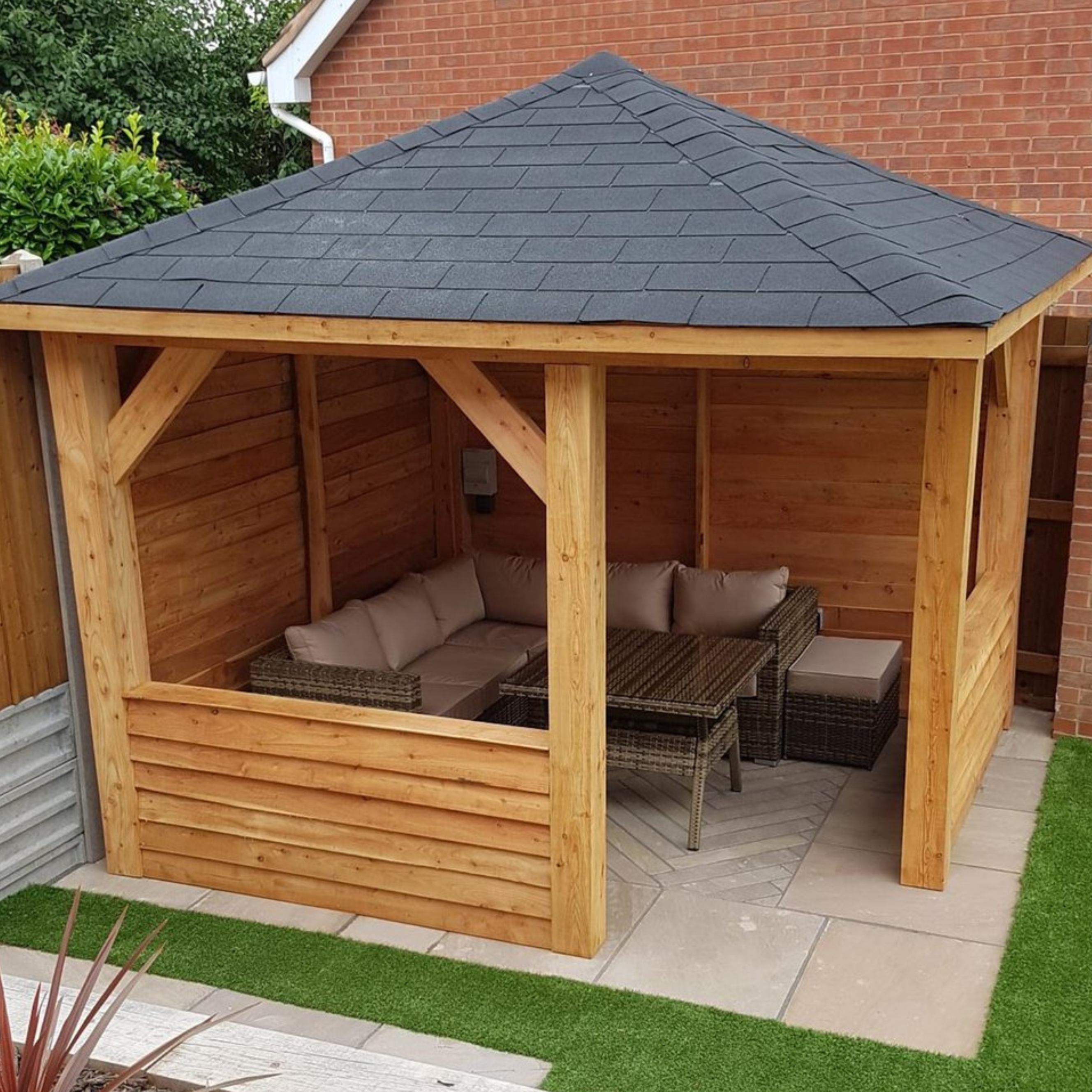 The Stockwin Gazebo exemplifies the finest in British craftsmanship, blending traditional construction methods with the natural beauty of UK-grown larch timber. Designed for practicality and aesthetic appeal, The Stockwin's unique corner-entry design makes it an ideal choice for maximizing space and accessibility.